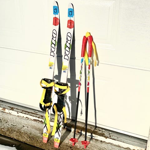 Yoko sukset Jr,oli kouluhiihdossa käytössä ja monot Salomon koko 35 (21,5cm) SNS siteillä.