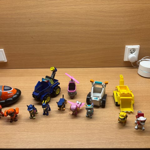 Rolle, Toma ja Vainu omissa kulkuneuvoissaan. Koirat eivät lähde autoista irti. Myydään yhdessä. Kulumaa, mutta ei vaikuta lasten leikkeihin