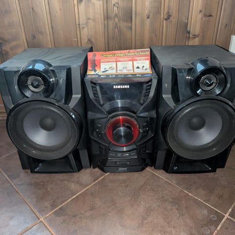 Kaikki toimii löytyy radio, cd/dvd, aux, usb, 2 karaoke mikrofoni paikkaa ja vanhalle Ipodille liitin