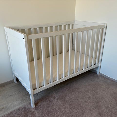 IKEA pinnasänky puunvärinen. Sängyssä on puiset laidat ja sälepohja, joka tukee patjaa ja lasta. Sopii vauvan ja pienen lapsen nukkumiseen. Meillä kahdella lapsella ollut käytössä. Vielä erinoimaoisessa kunnossa seuraavalle. Patjan suojus pesty!