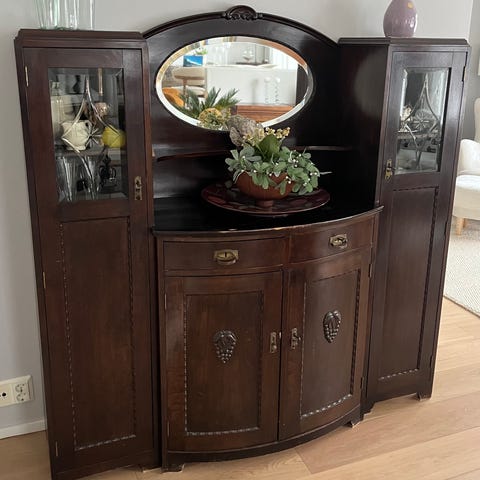 Hakusanat: astiakaappi, peili, lasiovet, jugend, vaaleanvihreä