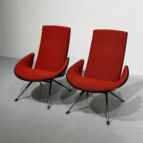 Hakusanat: nojatuoli, punainen, metallirunko, Valmistaja, puukäsinojat, moderni retro, hakola
