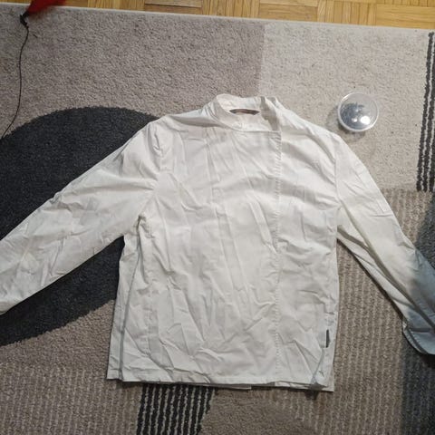 Perus kokin housut, 2kpl identtiset housut. Toisista housuista puuttuu nappi muuten ei mitään moitittavaa. Myydään vain parina