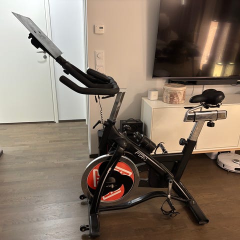 S Line 480 spinningpyörä kotikäyttöön. Pyörässä on musta runko keltaisilla yksityiskohdilla ja etupyolinen vauhtipyörä. Satula on korkeussäädettävä ja liukusäädettävä, ja ohjaustangossa on useita otemahdollisuuksia. Keskikonsolissa on pieni näyttö, josta voi seurata perustoimintoja, kuten aikaa ja matkaa. Polkimissa on remmit, jotka tukevat jalkaa harjoittelun aikana. Sopii sisäharjoitteluun ja kuntoiluun eri tasoisille käyttäjille.