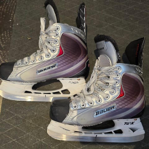 Lasten hokkarit ja teräsuojat. Sisämitta noin 25cm