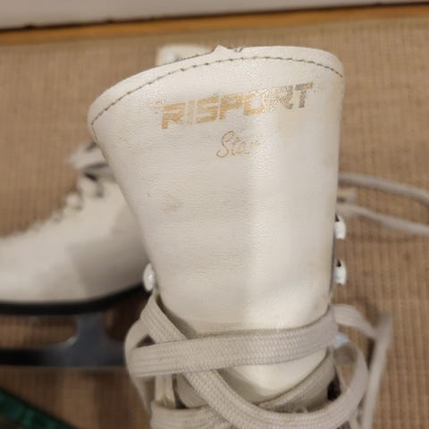 Risport Star taitoluistimet, koko 36. Väri valkoinen. Terät kiinnitetty ruuveilla pohjaan.