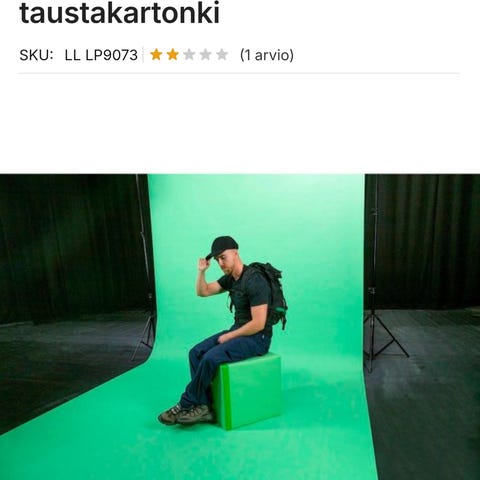 Vihreä taustakangas, mitat 160 x 157 cm.