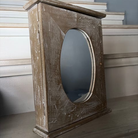 Myydään ehjä, vintage-tyylinen avainkaappi. Puukehys, metalliovi.