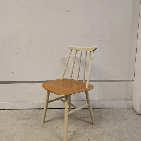 Vanha pinnatuoli, jonka istuin teakviilua ja runko musta. Kunto kohtalainen, selkänoja kaipaa kiristystä ja maalissa kulumaa. Kestävät istumista. Myynnissä kaksi tuolia, yhden hinta 35€