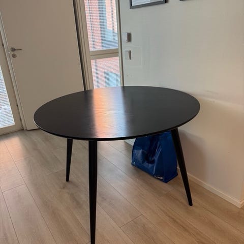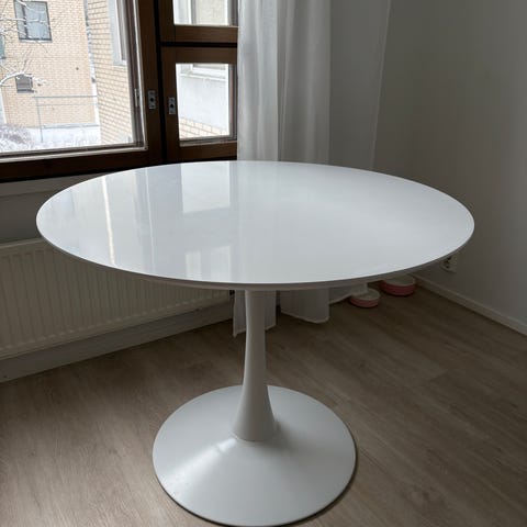 Ihana ja laadukas pyöreä pöytä. Halkaisija 105cm. Ostettu alunperin Jyskistä ja ollut pidempään käytössä, joten kannessa käytön jälkiä. Kysy lisää tarvittaessa! :)