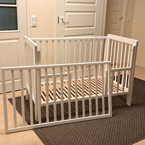 IKEA vauvan keinuva pinnasänky valkoinen puu. Puinen, valkoinen pinnasänky vastasyntyneelle ja pienelle vauvalle. Sängyssä on kaarevat jalakset, joiden ansiosta sänkyä voi keinuttaa.. Patja joka kaksi osainen kuuluu mukaan. Toinen tappi hieman rikki, nopeaa pikaliimalla saa kuntoon.
