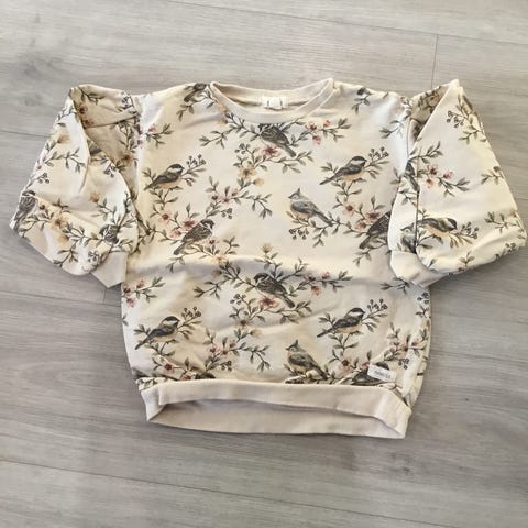 Name it Basic Needs lasten collegepaita. Koko 116 cm, unisex-mitoitus. Materiaalina puuvilla. Paita on väriltään kirjava, vaaleanpunaisella pohjalla tummia ja ruskeita lehtikuvioita. Pitkähihainen malli, jossa joustava resori pääntiessä, hihansuissa ja helmassa. Soveltuu arkipaidaksi lapselle noin 5–6 vuoden ikään koon mukaan.