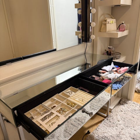 Hyvässä kunnossa meikkipöytä valopeilin kanssa myydän tarpeettomaksi. Meikkipöytä Ehjä ei ole vikaa eikä vauriota vain pieniä käytönjälkiä löytyy. Valopeili annetaan ilmaiseksi pöydän kanssa koska peili on rikki kuten kuvassa näkyy mutta valot toimii hyvin ja valoissa on kolme eri väriä.