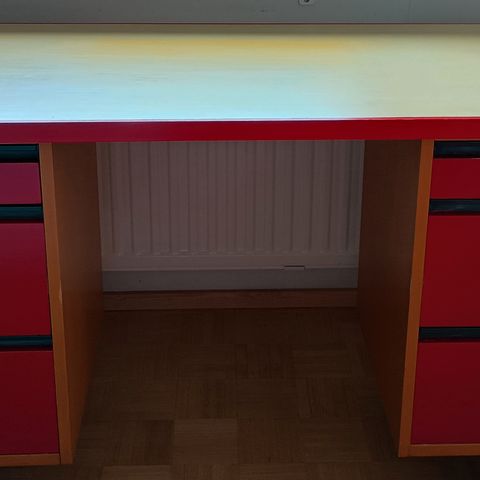 Menee neljään osaan: pöytälevy, vetolaatikot, kaappi ja takalevy.