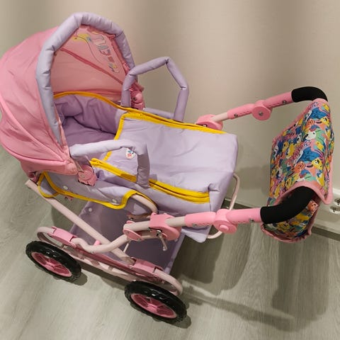 Myydään kuvanmukaiset Baby Bornin nukelle jo vanhenpaa tuotantoa olevat nukenvaunut, sitteri ja turvakaukalo.