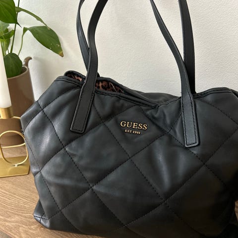 GUESS musta & kermanvärinen tote-laukku – tyylikäs ja tilava – hyväkuntoinen ✨