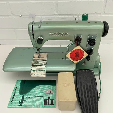 Hyvä kunnossaoleva kone. Metallirunkoinen. Tarkistettu ja huollettu muutaman kuukauden sisällä. Toimii hyvin. Mukaan tulee poljin ja tarvikerasia.
