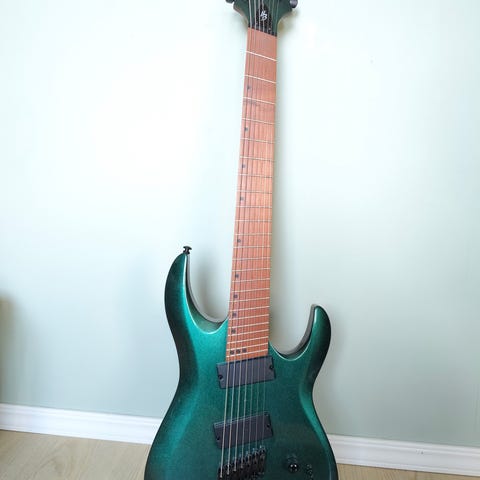 Kuvanmukainen siisti sähkökitara. Floyd rose tremololla oleva malli.