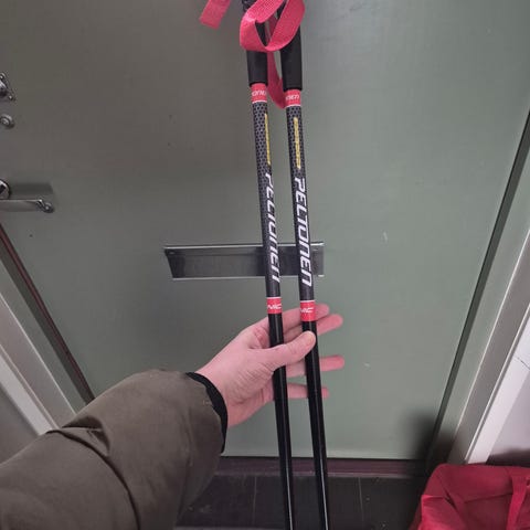 Peltonen Sonic lasten hiihtosetti. Sukset on 90 cm pitkät ja sauvat on 70cm