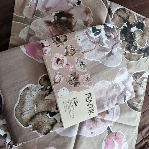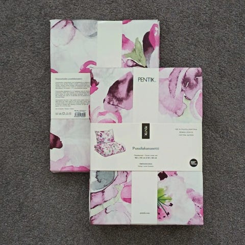 Pentikin laadukas Syreeni , puuvillaperkaali , pussilakana + tyynyliina . Kesäinen , hempeä , avaamaton pakkaus.