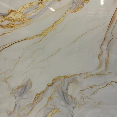 Elegantti onyx-marmori-ilme lämpimillä beige-, helmiäis- ja rosegold-sävyillä. Kiiltävä High Gloss -pinta ja 3D-syvyys luovat näyttävän, valoa heijastavan luksusviimeistelyn ilman luonnonkiven painoa tai kustannuksia
