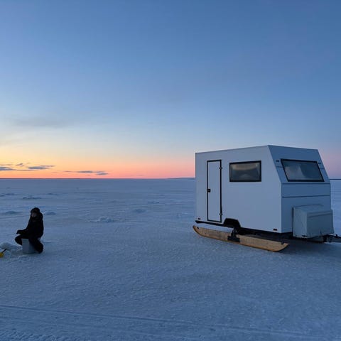 Peräkärryn päälle tehty pilkkikoppi. Kärry on rekisterissä.