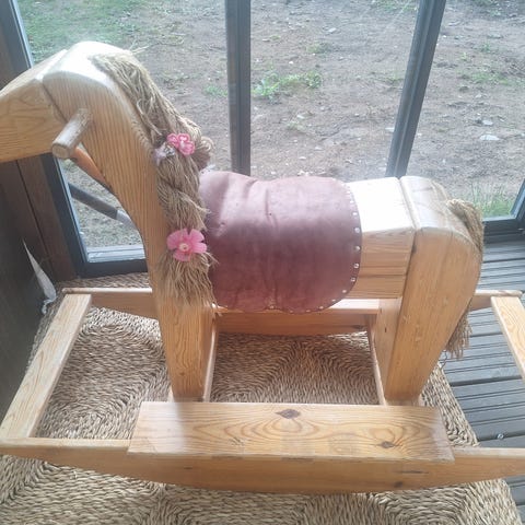 Keinuhevonen, mummolakäytössä ollut ja sittemmin sisustusartikkelina.