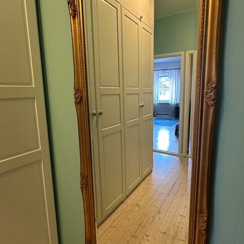 Hyvässä kunnosa oleva vintage peili. Hyvin tehdyt koristeet. Kullan värinen.