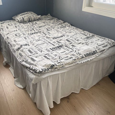 Myydän sänky jossa on vaaleanharmaa runko ja metallijalat. Mukaan tulee petauspatja ja halutessaan päiväpeitto.
