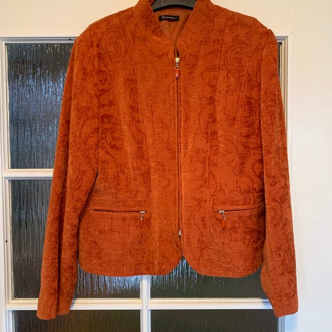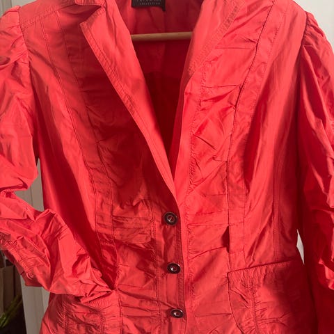 Carolin Muotihovi naisten jakku. Koko 42. Violetti väri. Jakussa on kauluskäänteet ja edessä nappikiinnitys. Sopii käytettäväksi esimerkiksi arkipukeutumisessa tai siistimpänä jakkuvaatteena