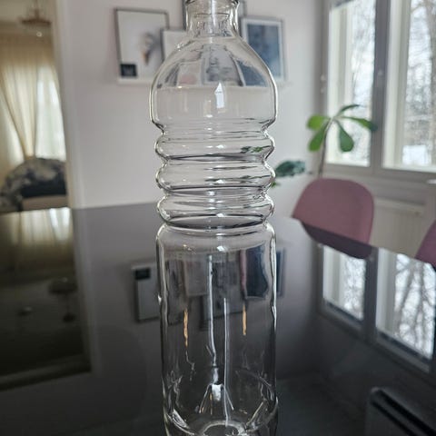 Uusi juomapullo itsetehtävälle makuvedelle. Muutamia pieniä jälkiä säilytyksestä.