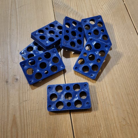 Elementin asennuspala kevyille elementeille ja ontelolaatoille, punainen 5 mm, saatavilla n. 950 kpl, myydään 100 kpl sarjoissa.