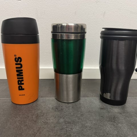 Uusi musta termosmuki pakkauksessaan.