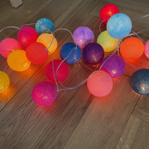 Random Light tyylinen lankapallovalaisin. Tästä riippuvalaisimesta tulee hieno kuviollinen varjo seinille ja kattoon. Näille valaisimille tyypillisesti muoto ei ole täydellinen pallo, vaan halkaisija on n. 48 x 56 cm. Nouto Sipoosta, mahdollisuus kuljettaa myös Pääkaupunkiseudulle.