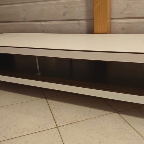 Annetaan pikaisesti muuton alta pois Jysk tv- taso. Uudessa asunnossa ei ole enään tarvetta / tilaa kahdella tv-tasolle. Tv-tason mitat: Leveys 120cm, korkeus 41cm ja syvyys 48,5cm. Toisella puolella iso laatikko ja toisella puolle hylly. Pientä käytönjälkeä on tullut jotka näkyy kuvissa mutta ne ei haittaa käyttöä ja mitään isoa ei ole. Taso on perus siistissä kunnossa. Ainut miinus on että takalevy puuttuu koska se oli liian pitkä eikä sopinut paikoilleen. Mutta käytössä se ei ole haitannut ja kun se on ollut seinää vasten ei kukaan sitä ole edes ikinä huomannut.