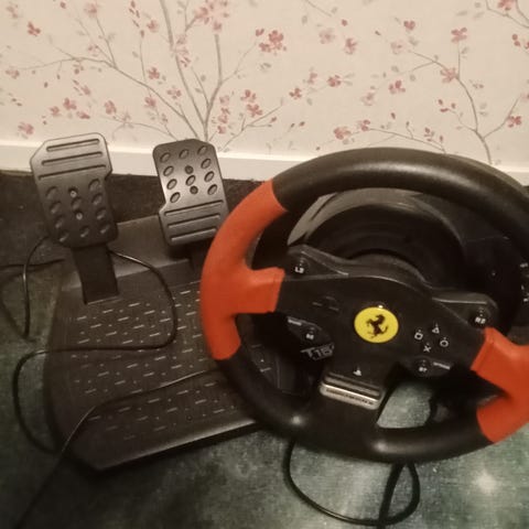 Thrustmaster Ferrari -peliratti ja polkimet. Pakettiin kuuluu ratti sekä poljinosa, jossa kaasu- ja jarrupoljin ei kytkintä. Hyvässä kunnossa sopii ps4, ps5 sekä pc. OVH.130€