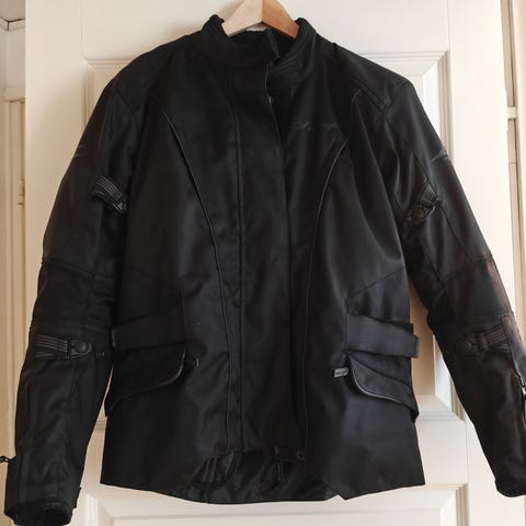 Richa merkkinen moottoripyöräasu. Takissa kyynärsuojat. Housuissa polvisuojat ja pehmusteet lantiolla. Muutaman kerran ollut päällä.
