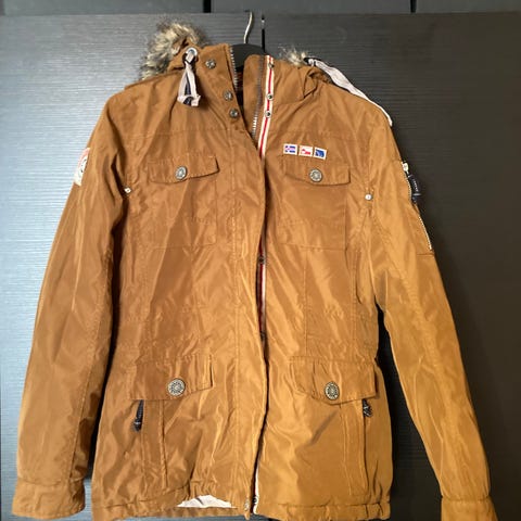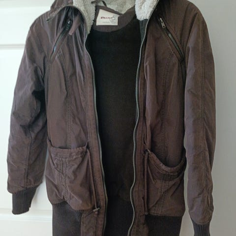 naisten talvitakki, Väri ruskea. Takissa on korkea kaulus ja etutaskut vetoketjuilla. Pituus on lantiolle tai hieman sen alapuolelle ulottuva. Sopii käytettäväksi kylmällä säällä arkitakkina.