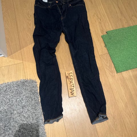 Bershka miesten farkut, valmistettu denimistä. Väri on sininen, vaaleansävyinen farkkukangas. Koko M ja vyötärökoko W31. Perusmalliset viisitaskuiset farkut, joissa vetoketju- ja nappikiinnitys edessä. Sopivat arkikäyttöön ja yhdisteltäväksi erilaisten yläosien kanssa. Pois myyntiin sillä itselle liian lyhyet.
