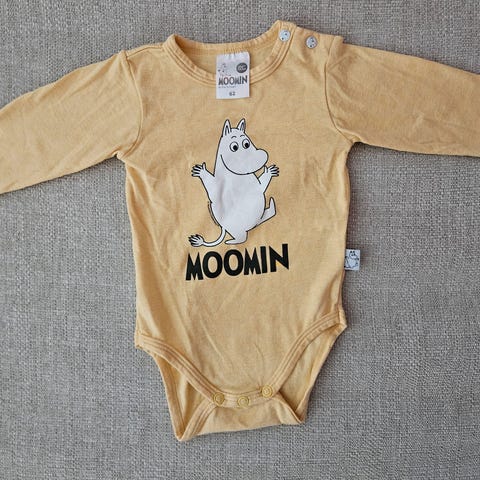 Muumi body, koko 62. Erittäin hyvässä kunnossa, en löydä moitteita. Saatu lahjaksi ja unohtui käyttää aiemmalla lapsella kenelle oli tarkoitettu.