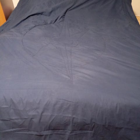 Luhdan erittäin siisti, valkoinen 160-180cm leveän parivuoteen päiväpeite (tyynyt ei tule mukaan, kuvassa 140cm sänky, peitto ryppyinen pesun ja säilytyksen jäljiltä). Ostettaessa ovh. oli lähemmäs pari sataa euroa. Hp. 40e