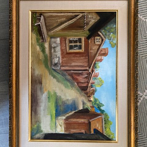 Taulu,kuvaus vanha Rauma,Alfred Kordelin syntymä koti,mitat korkeus kehys ulkoreuna 94cm leveys 78cm,öljyväri työ.Maalannut P Tuominen