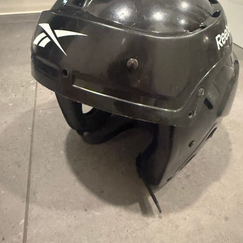 Reebok jääkiekkokypärä valkoinen. Kypärä soveltuu jääkiekkoon ja muuhun luisteluun. Värinä on valkoinen, ja kypärässä on ilmanvaihtoaukkoja. Hihna kiinnitystä varten näkyy kuvassa. Reebok 3 K L