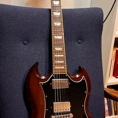 Gibson SG Deluxe vm. 1972 myytävänä. Lapa korjattu ammattilaisella. Laukku ei alkuperäinen. Toimiva kitara.