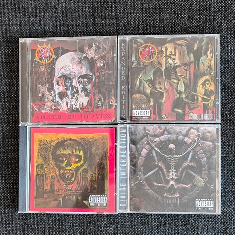 South of heaven, seasons in the abyss, reign in blood, god hates us all ja divine intervention.