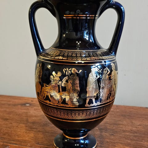 Hakusanat: kreikkalainen, neofitou, vaasi, koriste-esine, Paketoitava, Valmistaja, kukkakuvio, lintukuvio, kultakoristelu