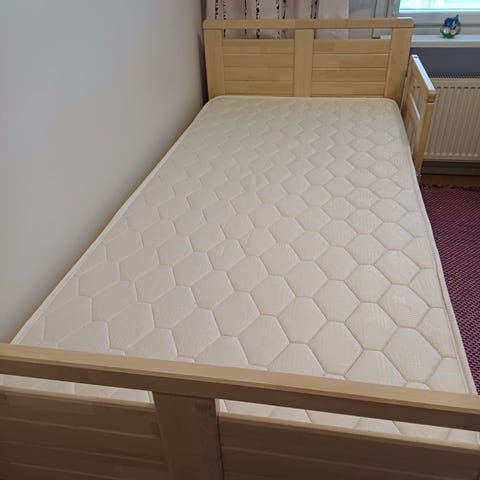 Tässä on sähkösäätöinen hoitosänky, joka on valmistettu puusta ja metallista. Sänky on varustettu pyörillä, joten sitä on helppo liikutella.Varustettu laadukkailla Linakin harjattomilla sähkömoottoreilla, kaikki toiminnot testattu ja toimii.