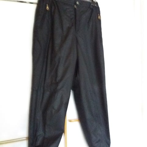 Hienot paksut lämpimät toppahousut, 2 vetoketjutaskua, kiristysnauhat lahkeissa. Vyötärö 87cm ja venytettynä 96cm. lahjepituus haarasta 75cm. vain nouto en lähetä.