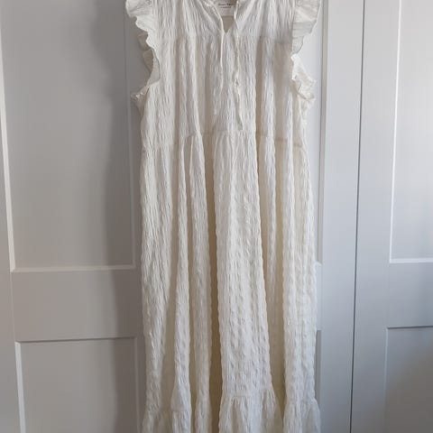 & Other Stories mekko, koko 44. Beige, pitkä paitamekko, jossa kaulus, napitus edessä ja kaksi rintataskua läpällä. Mukana irrotettava vyö samaa materiaalia. Materiaali polyesteriä. Pitkät hihat ja nappikiinnitteiset hihansuut. Sopii arki- ja toimistokäyttöön. Kai-kai 56cm ja olka-helma n 126cm. Nouto onnistuu Turku-Naantali tai postitus.