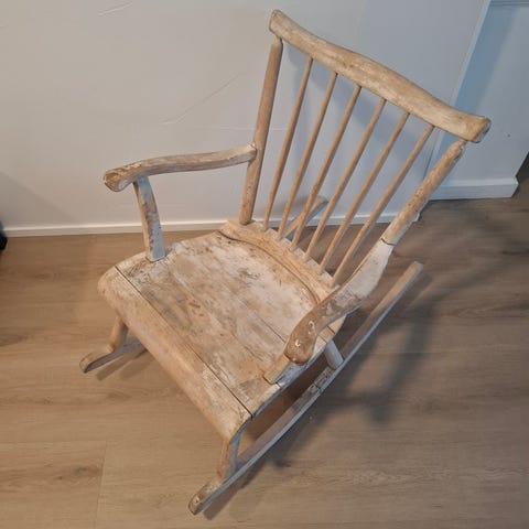 Vanha tykky keinutuoli. Maalipinta on huono.